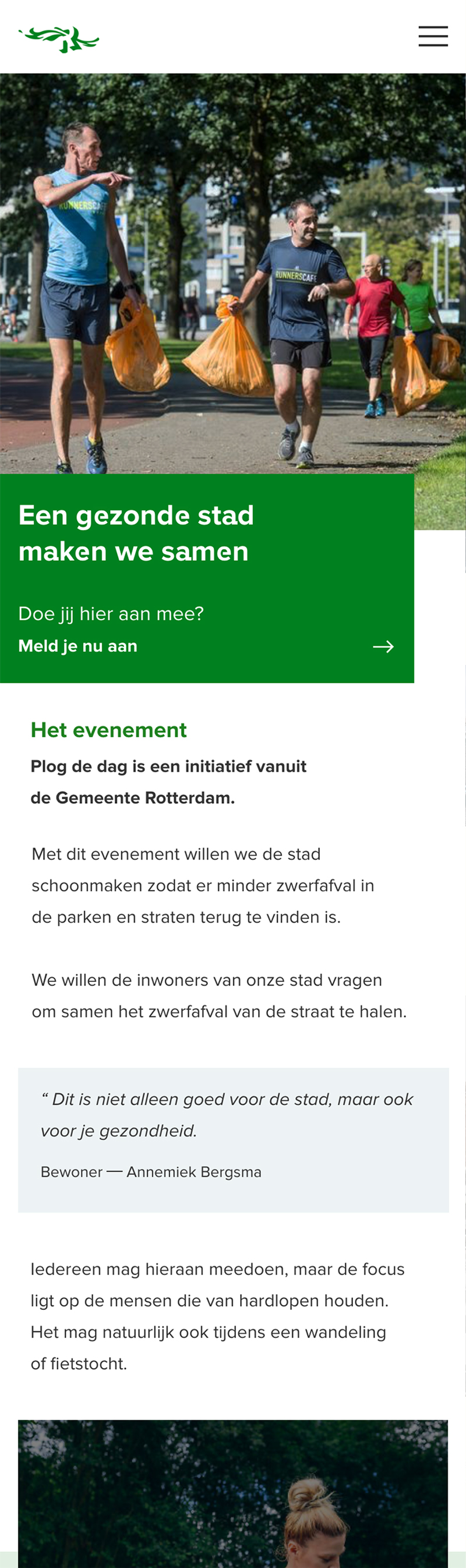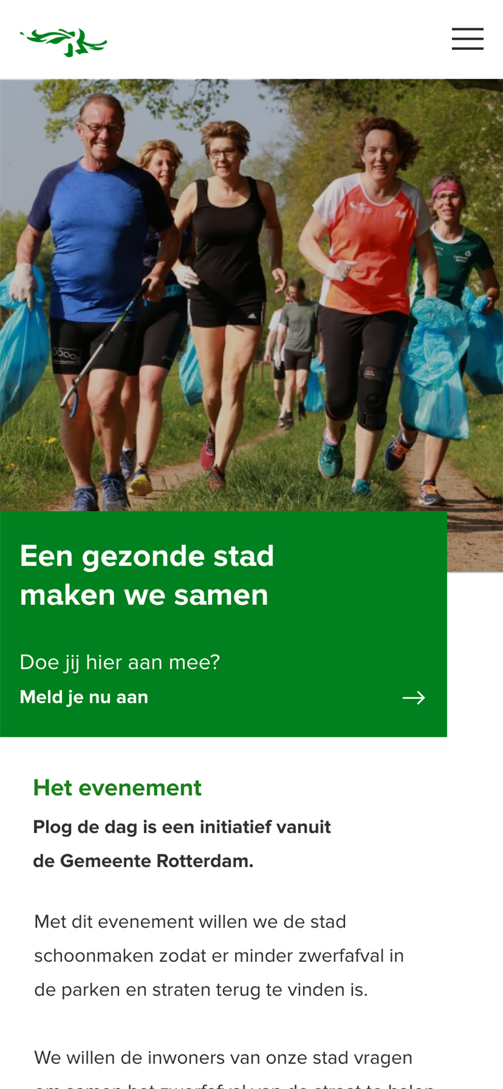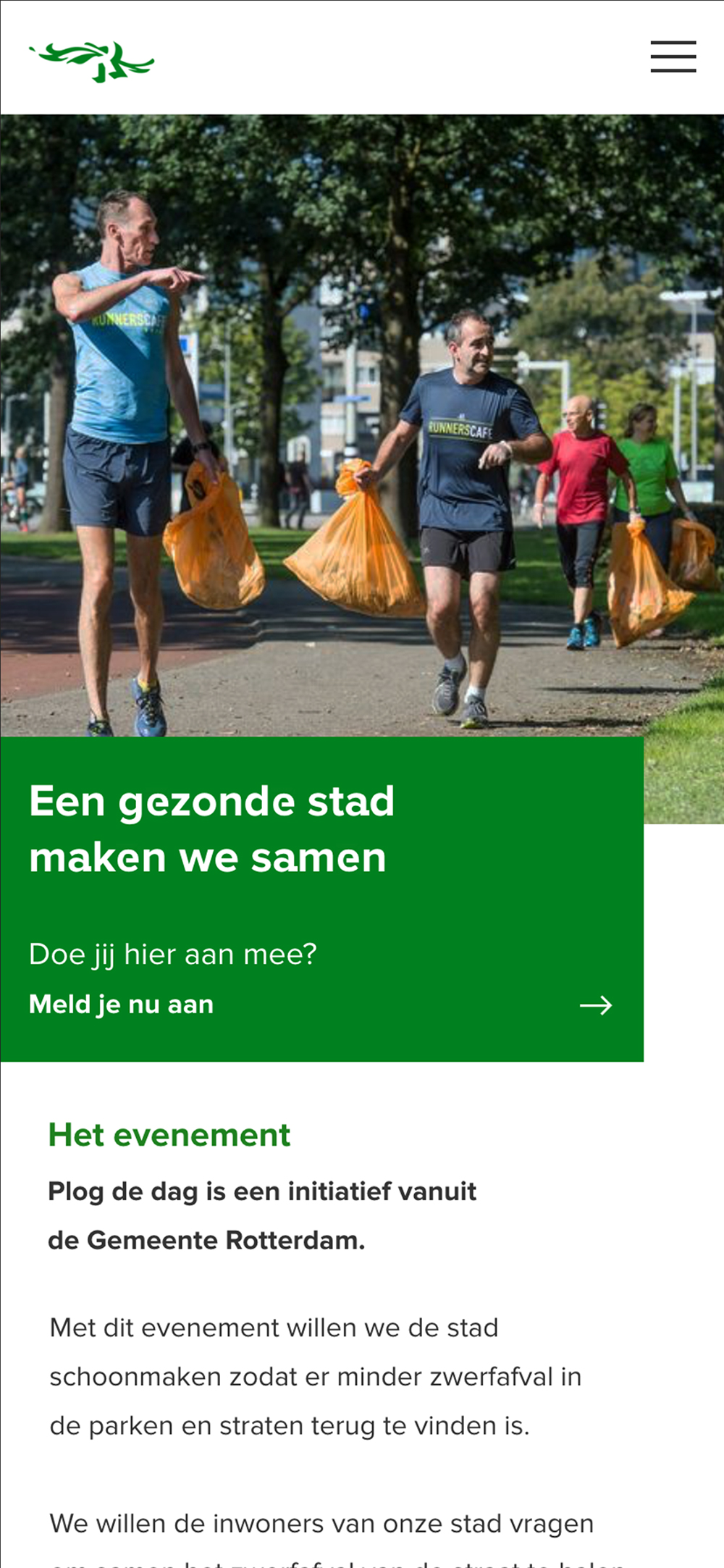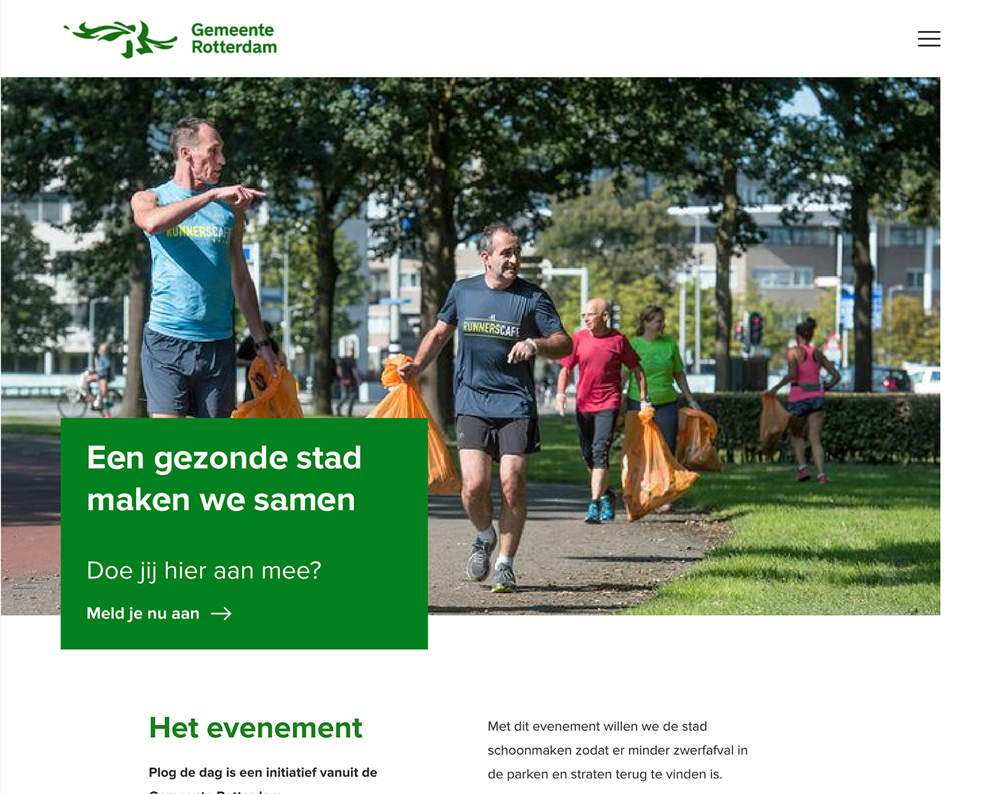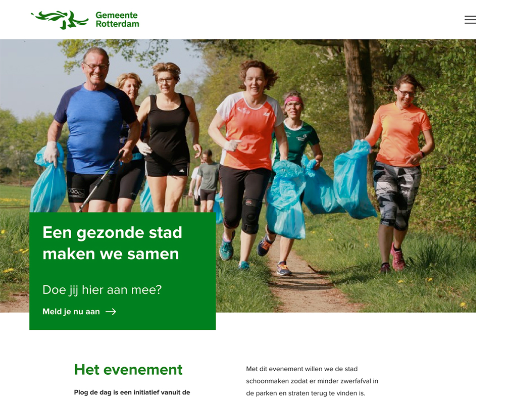 Aan ons de vraag om een multi device ontwerp te creëeren voor de campagne “Plog de dag“, in de huisstijl van de Gemeente Rotterdam. Het is belangrijk dat de gewenste functionaliteiten en aangeleverde content hierin zijn verwerkt.
